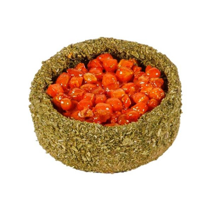 Zdravý a chutný pamlsek připomínající sushi je určený pro králíky, morčata, činčily, osmáky, křečky, potkany, myši a další hlodavce. Kartonový kroužek naplněný mrkví a petrželí poskytuje drobným mazlíčkům nejen chuťový zážitek a zábavu, ale při okusování také napomáhá přirozenému obrušování zubů.