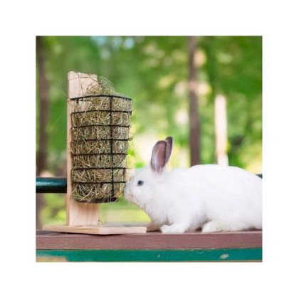 Praktické a odolné jesličky na seno s kovovou konstrukcí a dřevěným stojanem díky svému tvaru šetří místo v ubikaci. Seno automaticky padá dolů, jakmile je spodní vrstva snědena. Jesle jsou stabilní, odolné proti okusování a hodí se do každé klece nebo výběhu.