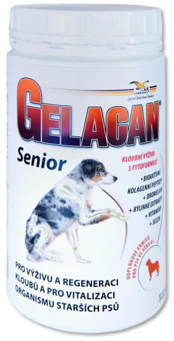 Gelacan® Senior obsahuje kolagenní peptidy CHP které zvyšují syntézu kolagenu, vyživují a regenerují kloubní chrupavky, šlachy, vazy a kosti a zmírňují, až odstraňují tak následky předchozí nedostatečné výživy nebo poškození kloubů, zabraňují dalšímu úbytku chrupavek, zlepšují hybnost a zmírňují bolestivost.