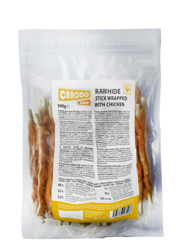 Pamlsek pro psy tvoří tyčinka ze sušené bůvolí kůže obtočená šťavnatým kuřecím masem. Kůže zabaví psa na delší dobu a podpoří mechanické čištění zubů
