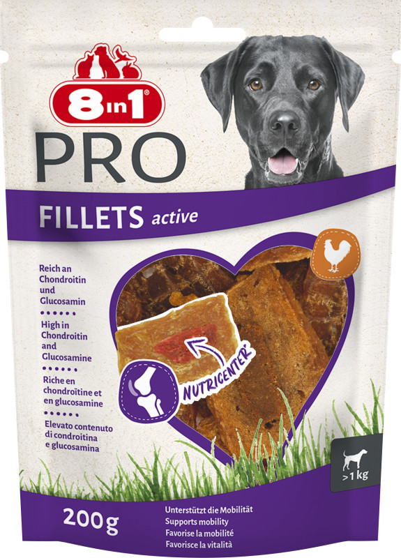 8in1 Fillets Pro Active jsou prvotřídní lahodné dobroty pro podporu vitality vašeho psa