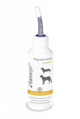 Šetrný a účinný přípravek pro oplachování předkožky u psů Sanocyn Forte obsahující aktivní chlor uvolněný z kyseliny chlorné (HOCl). Rozpouští a odstraňuje odumřelé buňky, sekrece sliznic, zbytky moči a jiné nečistoty. Přípravek je vysoce účinný (99.99%) proti běžně se vyskytujícím bakteriím, virům a plísním. Je zcela bezpečný, má neutrální pH, neštípe ani nezpůsobuje podráždění, neobsahuje Chlorhexidin.