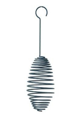 Závěsné kovové krmítko ve tvaru spirály na 3 lojové koule. Výška spirály 15cm. Dodáváno bez koulí.