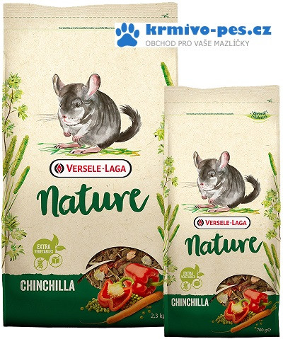 Chinchilla Nature obsahuje extra porci vlákniny, bylinky, zeleninu, ovoce a navíc také zdraví prospěšná nutraceutika. Ta podporují správné zažívání, zdravý chrup, zářivou srst a pevné zdraví. Velká rozmanitost použitých surovin zaručuje výtečnou chuť a vynikající příjem.