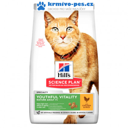 HILL'S SCIENCE PLAN Youthful Vitality krmivo pro kočky poskytuje přesně vyváženou výživu pro boj s hlavními následky stárnutí u starších koček.