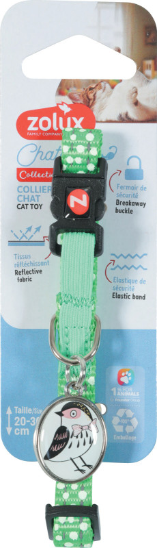 Obojek kočka CHATOUILLE s přívěskem zelená Zolux