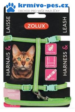 Postroj kočka s vodítkem 1,2m zelený Zolux