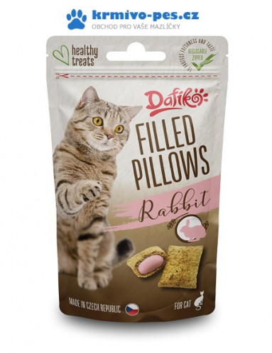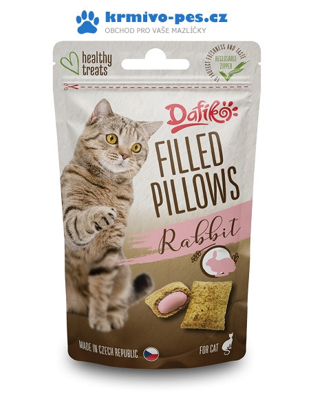 Pamlsek pro kočky ve formě plněných králičích polštářků