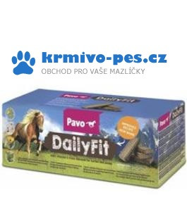 Vitaminová sušenka pro koně a poníky - Pavo DailyFit je velmi chutná vitaminová oplatka, která obsahuje denní dávku vitamínů a stopových prvků. Je vhodná pro všechny typy koní a poníků. Je vhodná pro všechny koně a poníky, protože obsahuje pouze živiny, které váš kůň potřebuje, bez další energie a kalorií, jako v koncentrovaném krmivu. Pavo DailyFit neobsahuje obiloviny a proto má nízkou hladinu cukru a škrobu. Kromě toho jsou oplatky obohaceny o prebiotika na podporu střevní mikroflóry. Dále obsahují různé květiny a byliny: květenství, pampeliška, měsíček a kopřiva podporující imunitní systém vašeho koně.