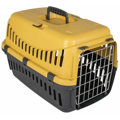 Transportní box pro kočky a malé psy, vyrobený z recyklovaného plastu, má velká kovová dvířka s bezpečnostním rychlouzávěrem a velké větrací otvory zajišťující dostatek čerstvého vzduchu během přepravy. Ideální pro cestování v bezpečí a pohodlí.