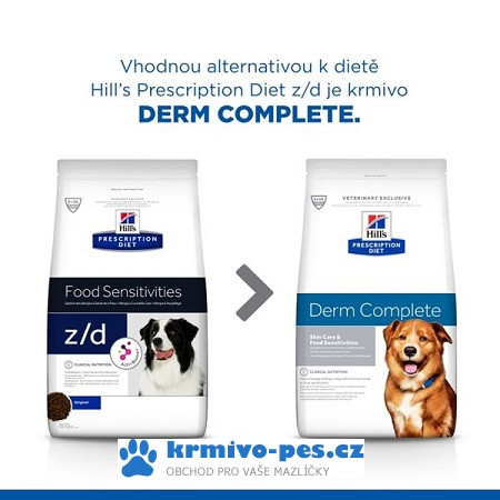 Hill's Prescription Diet z/d je kompletní dietetické krmivo používané pro snížení intolerance přísad a živin u dospělých psů. Toto dietetické krmivo obsahuje vybraný zdroj sacharidů a zdroj hydrolyzované bílkoviny. Klinicky ověřené krmivo, které pomáhá snižovat kožní a trávicí příznaky alergií na krmivo.