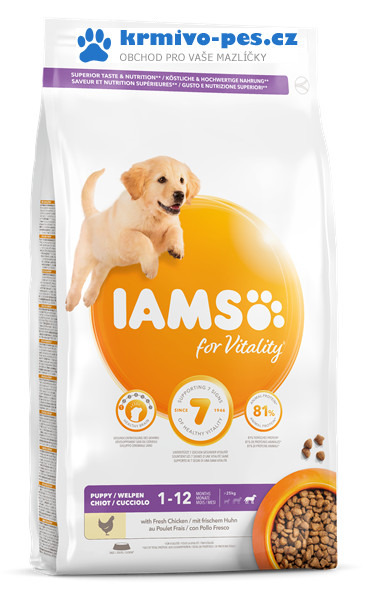 Krmivo IAMS for Vitality pro štěňata velkých plemen je 100% kompletní a vyvážené krmivo, které podporuje sedm znaků zdravé vitality štěněte a současně přispívá ke zdravému růstu a vývoji. Veškeré živiny jsou obsažené v lahodné receptuře s 81% obsahem živočišných bílkovin (z celkového obsahu bílkovin). Umožněte svému mazlíčkovi užívat si každý den naplno.