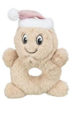 Hračka pro psy, plyšová sušenka s obličejem a vánoční čepicí