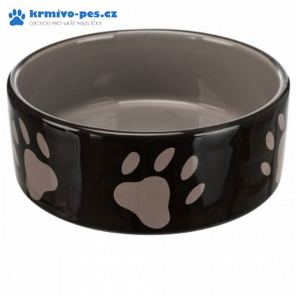 Keramická miska 0,3l/12cm - černá/tmavě šedá + motiv tlapky - POSLEDNÍ KUS