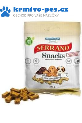 Mediterranean Natural Serrano Snacks, pamlsky delikátně rozkrájené na malé kousky ve tvaru kosti, zaručují bezpečnost vašeho čtyřnohého přítele, přičemž zachovávají všechny živiny, respektují přirozenou stravu a obsahují 60% čerstvého masa. Jsou bez lepku, neobsahují umělé barviva, neobsahují GMO ani trans-mastné kyseliny. Jedná se o dokonalým pamlskem k odměnění vašeho mazlíčka za dobré chování. Sáček je možné opětovně uzavřít pomocí vzduchotěsného uzávěru. To ochrání živiny a udrží je v dobrém stavu.