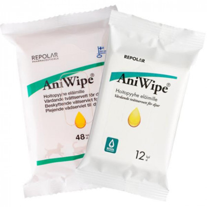 Čisticí ubrousky AniWipe® vyrobené ve Finsku firmou Repolar jsou vhodné zejména na kožní záhyby, uši, meziprstí, bradu a další postižená místa kůže zvířat.