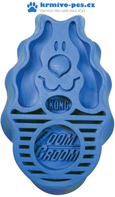 Patentovaný gumový hřeben ZoomGroom je vedle legendárního „gumového sněhuláka“ jednou z největších stálic v sortimentu KONG. Díky svým dvoucentimetrovým gumovým zubům kuželovitého tvaru pronikne i dlouhou a hustou srstí, a může tak nejen účinně vyčesávat línající chlupy, ale také šetrně masírovat pokožku a tím podporovat její prokrvení a přirozenou tvorbu kožního mazu. Funguje stejně dobře nasucho jako zamokra a při koupání usnadňuje aplikaci i vymývání šamponu. Rukojeť má ergonomicky tvarované okraje pro pevnější úchop.
