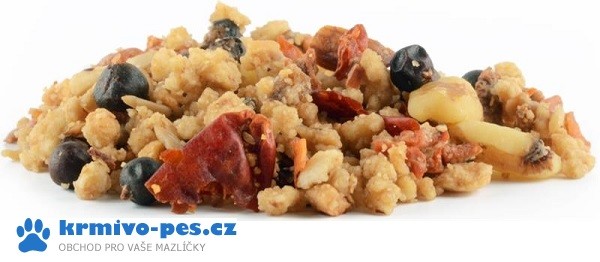 Složení: Pekařské výrobky, ovoce (15 %), oleje a tuky, cukry, vedlejší výrobky rostlinného původu, ořechy (5 %), semena, zeleniny, minerální látky, kvasnice.